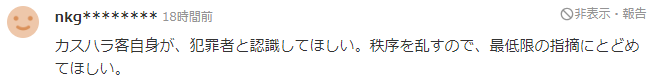 希望會“顧客騷擾”的客人自己意識到是犯罪者,因為擾亂了秩序,希望少説兩句