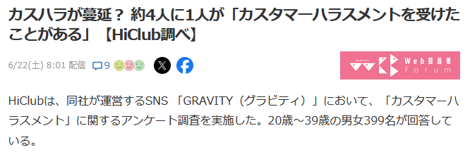 日本近年流行的一個詞叫“顧客騷擾”(カスハラ),指的是服務行業遇到無理索賠、要求過度的顧客,從而產生很多困擾的情況。