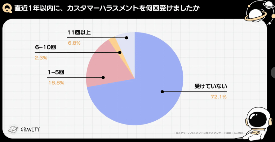 其中有人多次遭遇顧客騷擾,最高的達到11次以上!