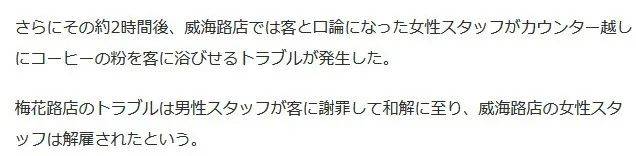 後來,一個店員情緒激動起來,聽到客户説要投訴時,突然將咖啡粉潑向客户,並高喊:“你投訴呀!”