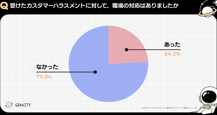 調查中問及面對顧客騷擾,有什麼應對措施時,有75.8%的人表示“沒有”。這也是多數人的反應。