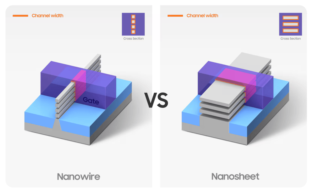 寬通道納米片和窄通道納米線對比,圖源:三星