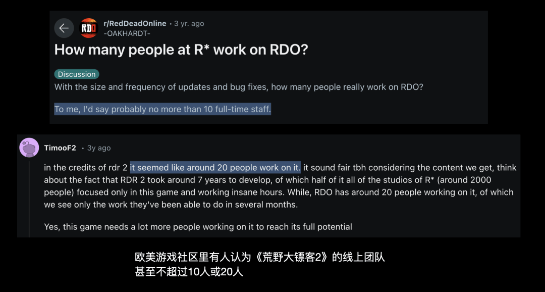 背後的核心原因在於:相當一部分中國網遊和手遊,本質上是互聯網產品,根本沒有工業屬性。而不論是3A大作還是小型獨立遊戲,本質上都是工業品,幾乎沒有互聯網屬性——參與《荒野大鏢客2》研發的正式員工1200餘人,結果線上模式團隊滿打滿算才68個人,純純邊緣小團隊。