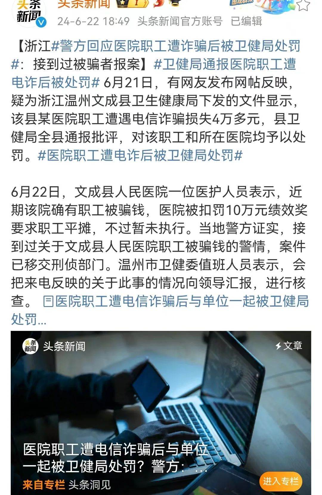 醫院職工遭電詐後又被主管部門懲罰,告訴你這世界就是個草台班子_風聞
