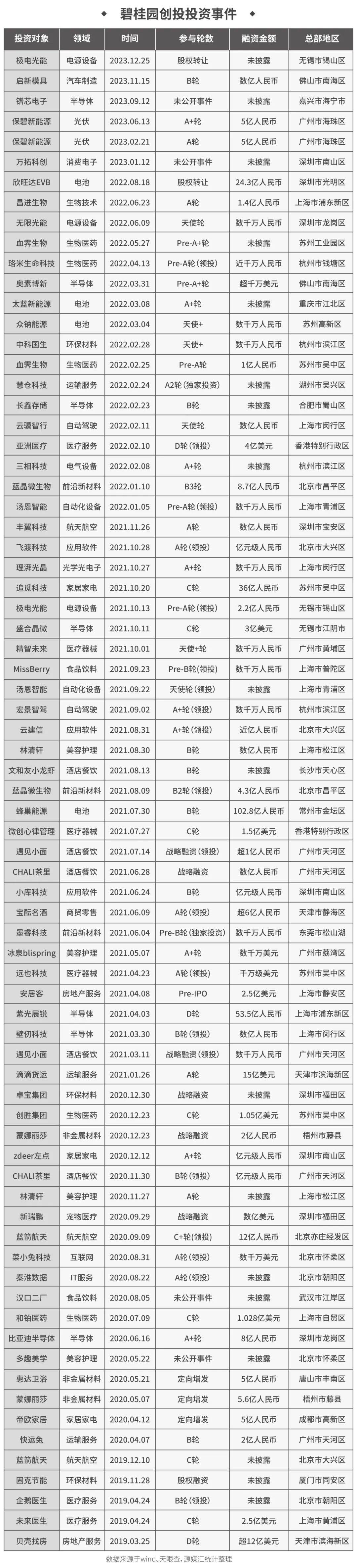 碧桂園創投投資事件,來源於wind