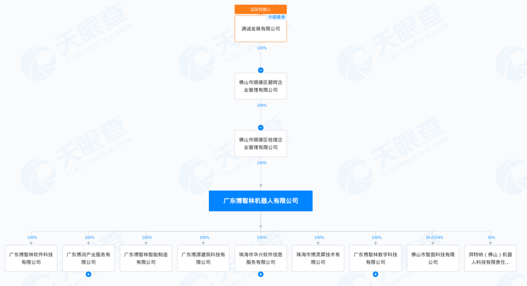 但根據天眼查顯示的工商信息會發現,博智林機器人最終控股主體同樣是香港私人股份有限公司。