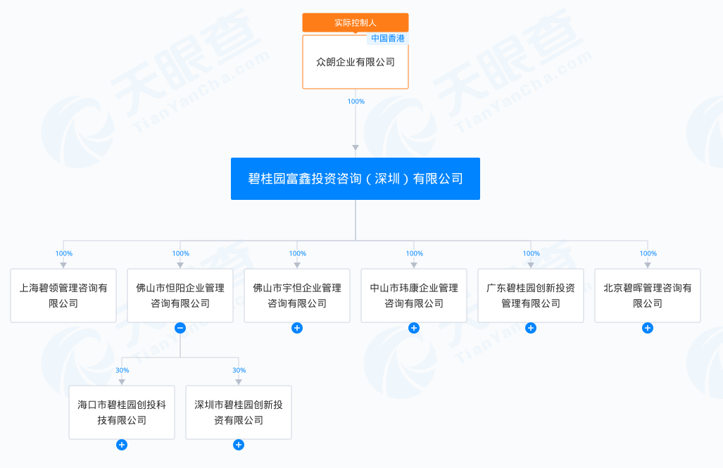 從工商信息可以發現,碧桂園創投主要投資平台公司是海口市碧桂園創投科技有限公司、深圳市碧桂園創新投資有限公司,兩者最終實控主體公司是香港眾朗企業有限公司。這是一傢俬人股份有限公司,成立於2017年6月。