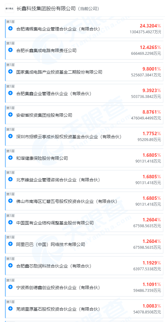 長鑫科技被稱為國內DRAM內存龍頭企業,也是“國產替代存儲芯片”代表企業,背後股東不僅有國家及地方產業投資基金,中信集團、招商局資本牽頭的產業投資基金,以及中金(601995.SH,03908.HK)、招銀、建銀、陽光保險(06963.HK)等金融、險資機構。