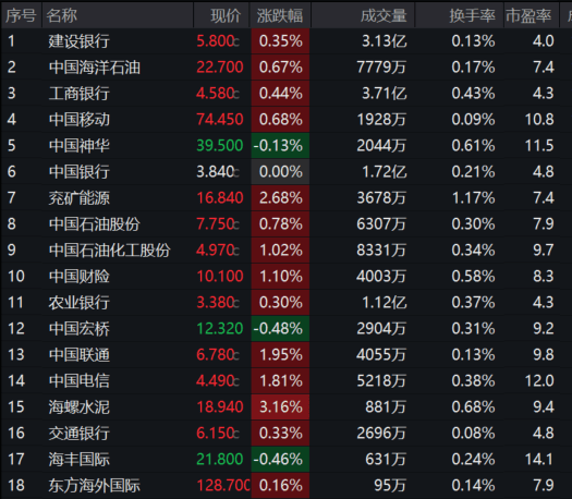 【港股通紅利30ETF(513820)標的指數熱門成份股6.25漲跌幅】