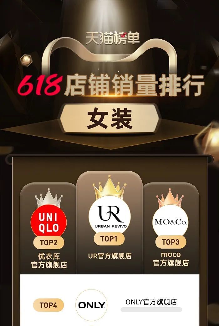 在電商渠道,UR的銷售額也一度超越優衣庫等品牌。根據天貓發佈的2022年“6·18”服飾銷售榜單,本土快時尚品牌UR排名女裝類目第一,長期位居榜首的優衣庫排名第二。
