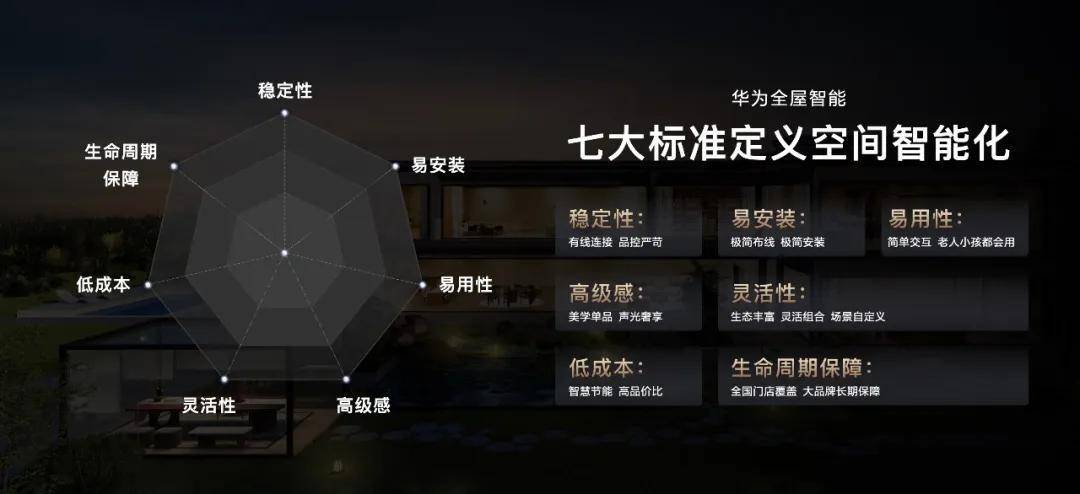 華為全屋智能具備七大優勢,即穩定性、易安裝、易用性、高級感、靈活豐富、低成本、生命週期有保障。通過開放,華為將這些能力賦予各行業合作伙伴,也將助推空間智能化的全面爆發。智能化將重塑人類賴以生存的各個空間,更多的行業也將被二次激活。
