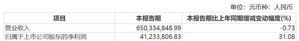 2024年一季度,公司實現營收6.50億元,同比下滑0.73%;歸母淨利潤4123.38萬元,同比增長31.08%。