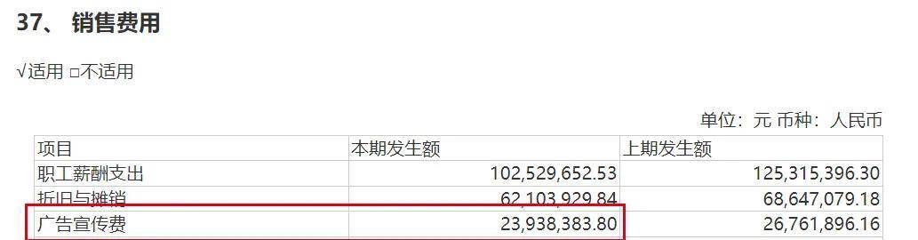 這讓公司的廣告宣傳費直接飆升。財報顯示,2019年至2023年,公司的廣告宣傳費分別為2676.19萬元、2393.84萬元、4222.37萬元、1.20億元、9558.79萬元。