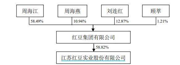 股權轉讓完成後,周耀庭不再持有紅豆集團股權,紅豆集團的實控人變更為周海江、周海燕、劉連紅、顧萃(周海燕配偶),4人合計持有紅豆集團83.51%股權,而紅豆集團持有紅豆股份58.82%股權。
