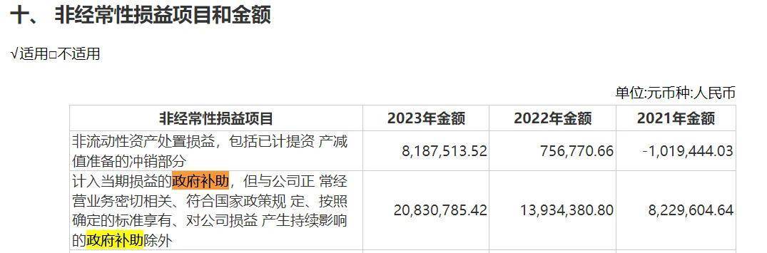 值得注意的是,2023年能夠實現歸母淨利潤的同比增長,很大程度上是依賴於政府補助。