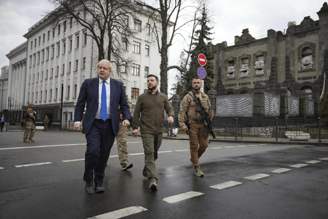 此外,那會兒英國前首相約翰遜突然訪問基輔,約翰遜和澤連斯基肩並肩在基輔街頭上散步,告訴澤連斯基不要相信俄羅斯人,澤連斯基被這麼一忽悠,再加上民意裹挾和戰場節節勝利,乾脆就掀桌子不談了。