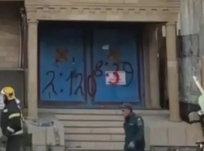 遭到縱火的猶太教堂門口留下的塗鴉,其中引用了《古蘭經》的章節:第一句是 “猶太人和基督徒不會對你們感到高興,除非你們信奉他們的宗教”,第二句是 “與他們戰鬥,直到他們的誘惑消失,他們的崇拜完全歸於真主”。
