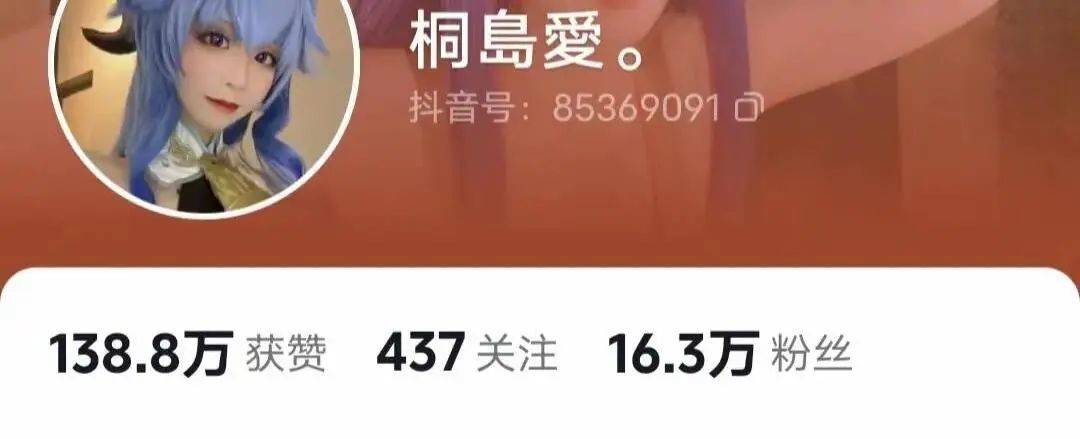 桐島愛在某音擁有16.3萬的粉絲在cos圈內有着不小的名氣