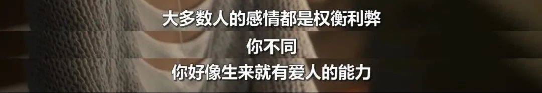 可以看出,兩個天生不會愛人的人,面對喜歡的對象,蘇蘇的態度——我不配,我不禍害別人,我禍害自己行不行;方協文的態度是——我不配,我強行得到讓自己有配得上的錯覺。