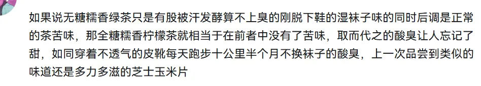 多數評價彙總起來,就是糯香檸檬茶有一股奇奇怪怪的味道,而且這股味道,彷彿是臭腳味。