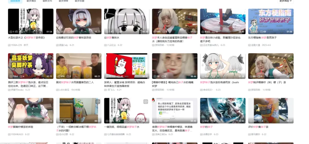 車萬人也冒出頭,來品鑑“妖夢襪子茶”。最近相關視頻越來越多了。