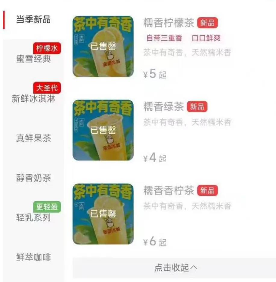 姬看了一下,在外賣軟件的部分蜜雪冰城裏,“糯香”相關產品確實已經被兜售一空。