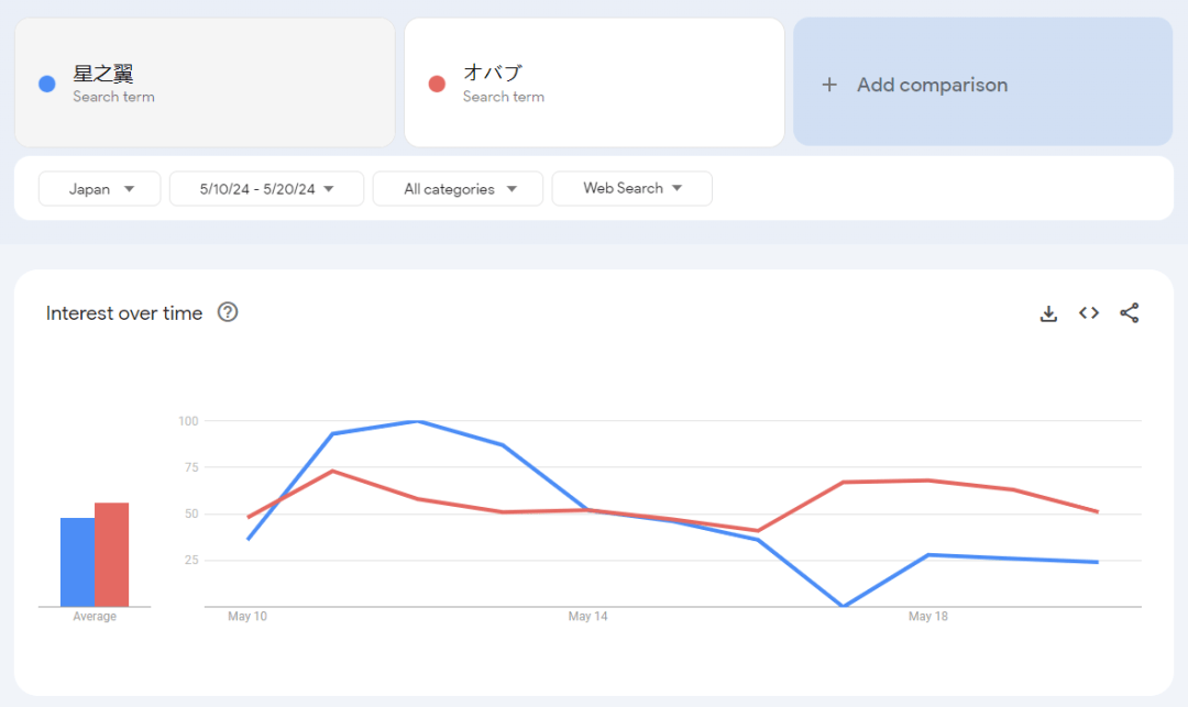 “星之翼”關鍵詞在日本谷歌上的熱度也一度超過了EXVS。