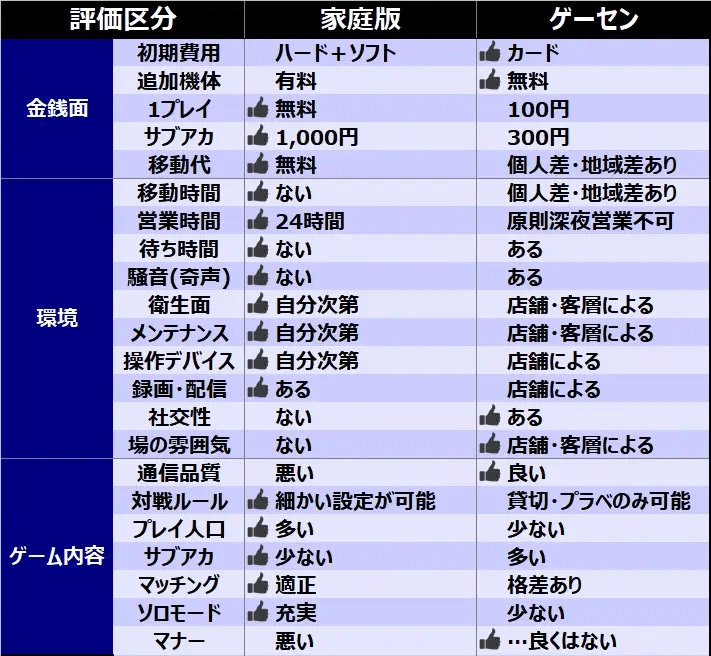 EXVSDB列出的“家用機VS街機版”的對比,可以看出在日本玩家眼中,