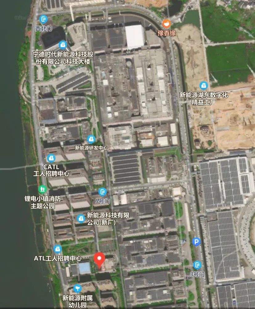 寧德新能源的地址在新港路 1 號,對面的新港路 2 號就是寧德時代。