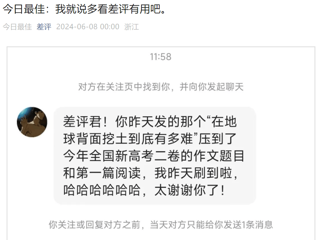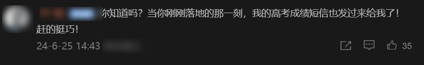 還有網友分享另外一條好消息,在嫦娥落地的那一刻,收到了高考成績的短信。