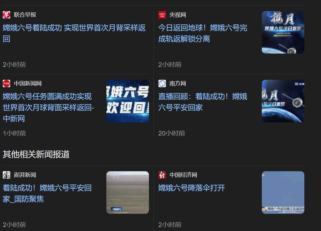 央視新聞,嫦娥六號實現世界首次月球背面採樣返回