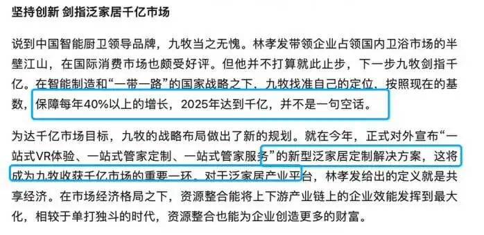 前幾年九牧想借助“泛家居戰略”撬動千億,最近兩年不怎麼提了。