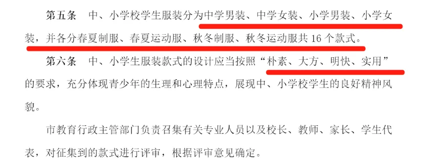 2003年出台《深圳市中小學生統一着裝管理辦法》的通知,對深圳校服施行統一招標、統一價格、統一標準、統一款式、統一商標、統一質檢。