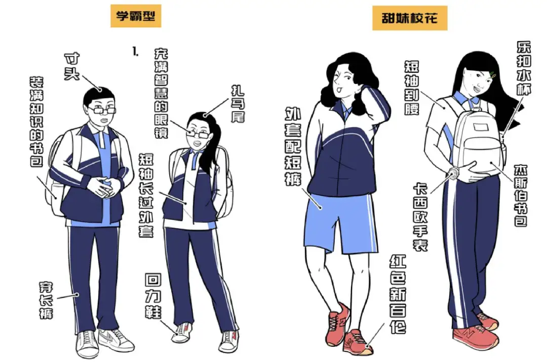 社交平台上,人們甚至發起“全網最醜校服挑戰”,吐槽校服寬大稀鬆、無法搭配的評論比比皆是。