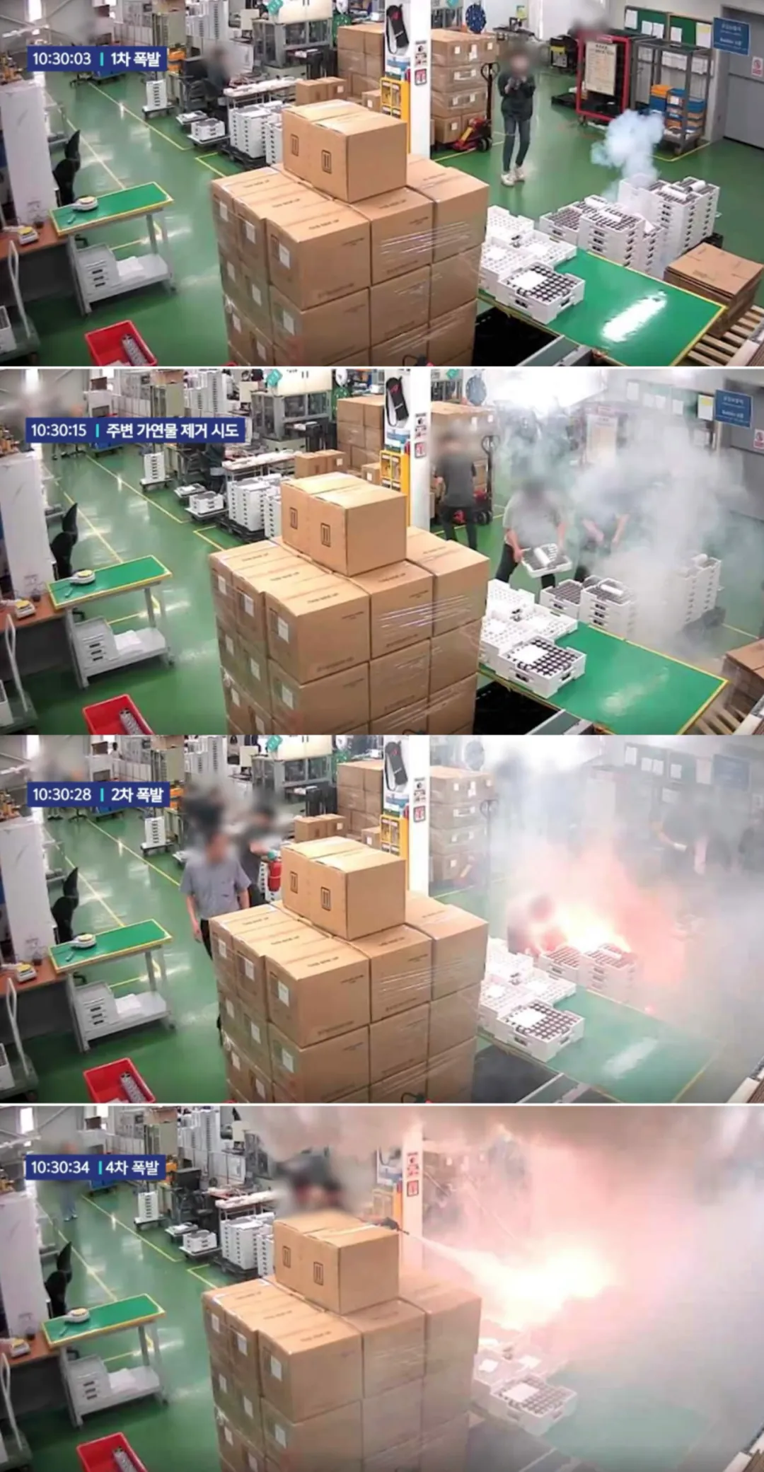 電池廠內不斷髮生爆炸,火勢兇猛
