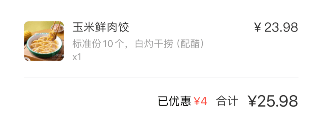 一份水餃(10個)價格25.98元,