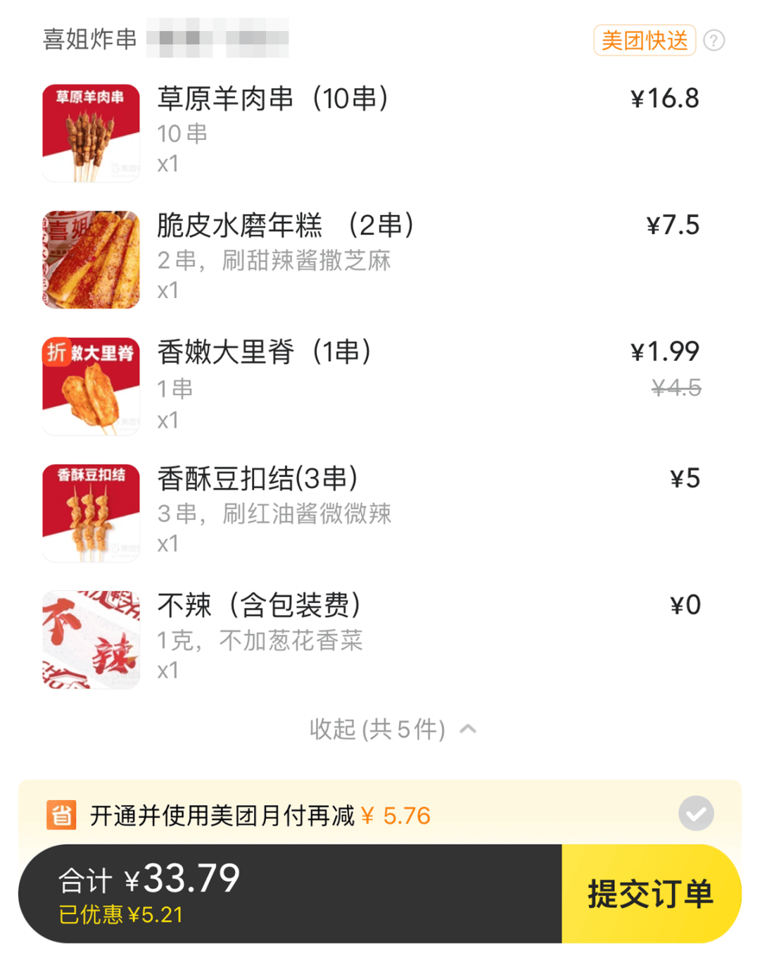 本次炸串我點了兩種外賣: