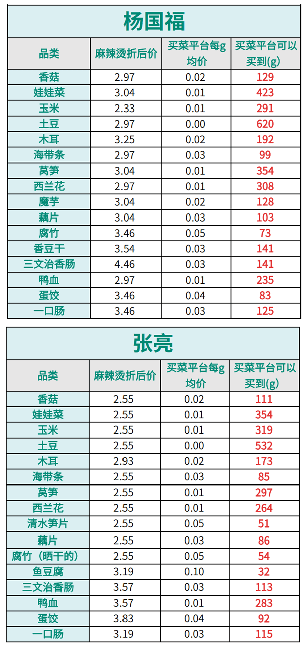 別急,我們再來看下,如果用買麻辣燙的錢去買菜,可以買多少呢?反正楊國福給我的也是沒煮熟的菜!