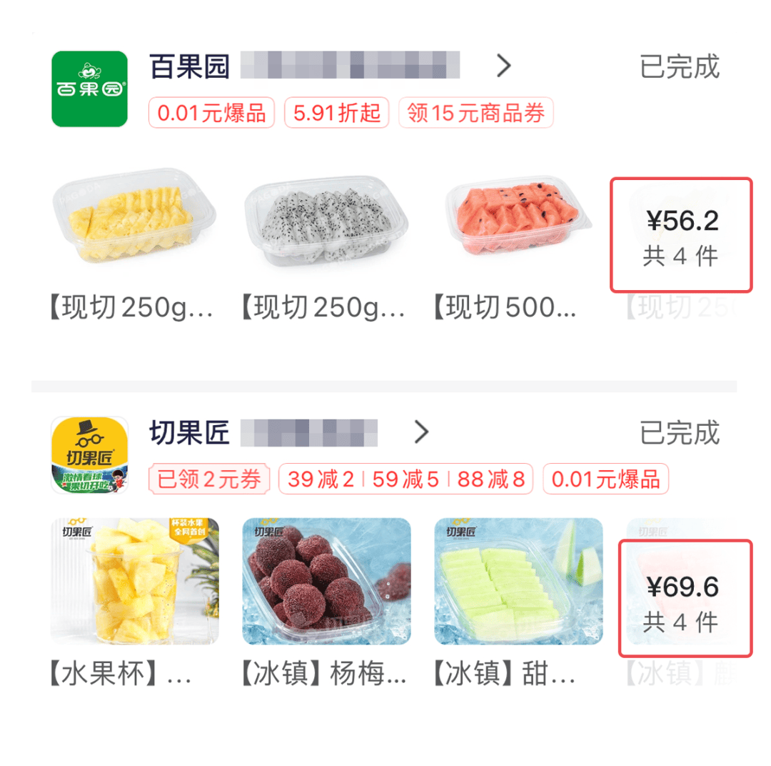 打開果切外賣店,我發現,也就十幾二十塊一盤嘛,比起50多塊的麻辣燙、80多還吃不飽的炸串,也能接受…