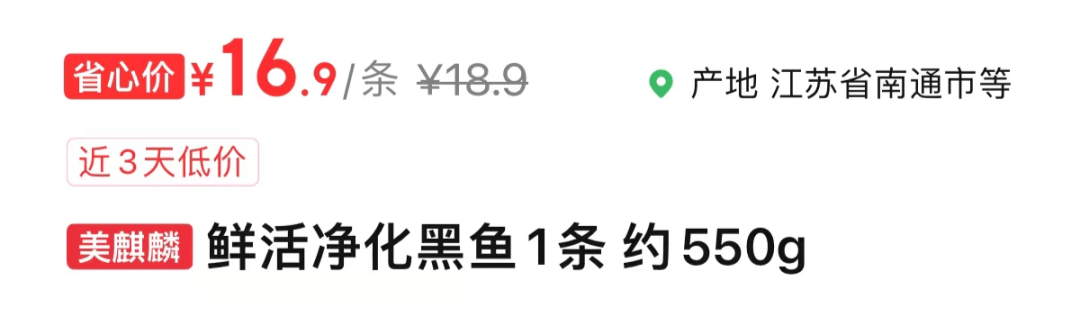 可以買一條1428g(約3斤)的黑魚。