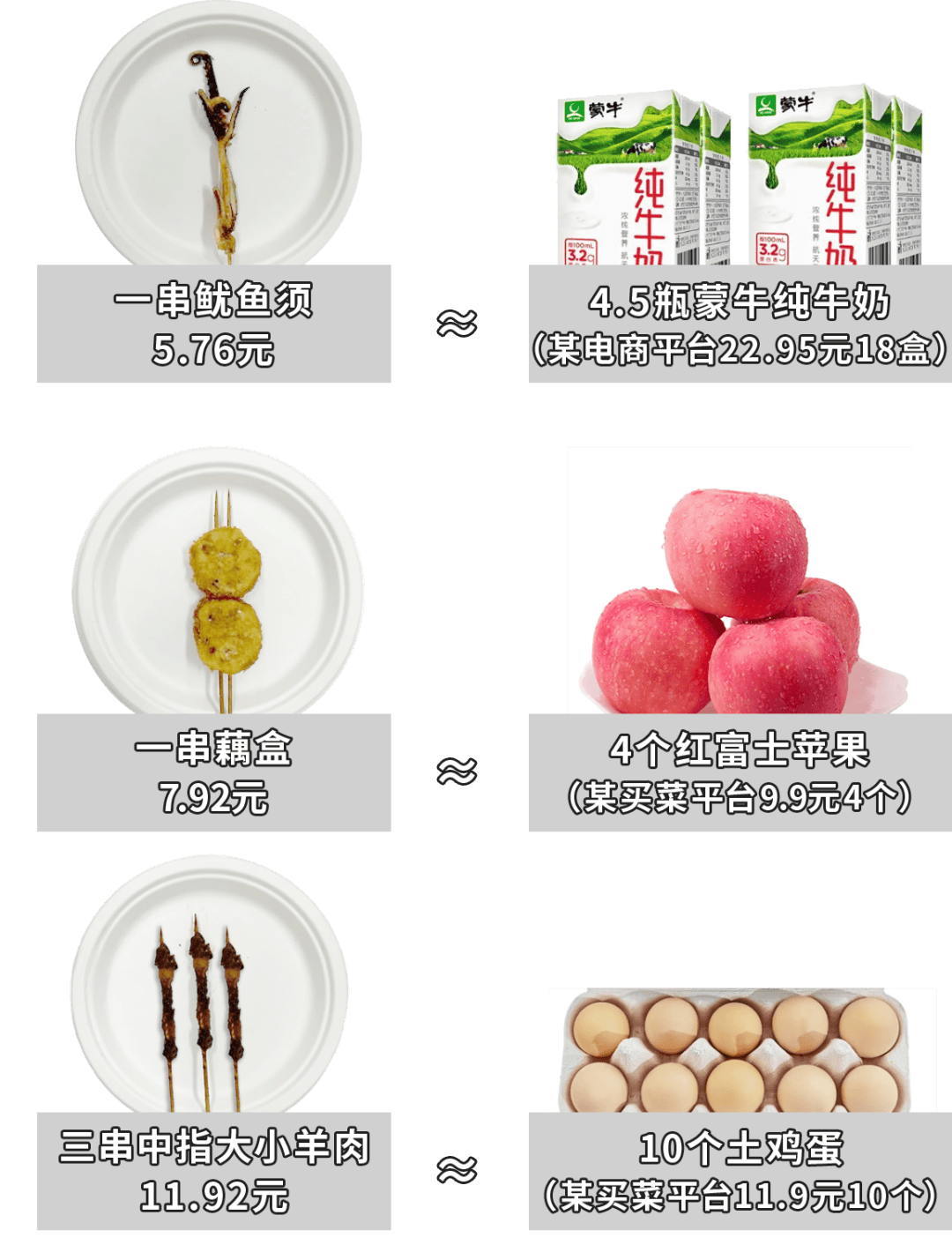 當然,以上價格對比,我沒有考慮店鋪運營成本、調料費、人工費……條件有限,無法做到這麼精確。