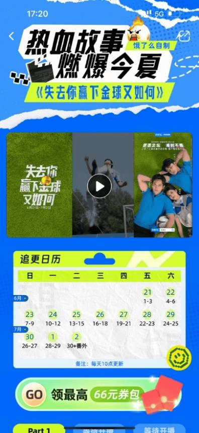 6月21日開始,餓了麼自制的短劇上線,在餓了麼搜索“足球火”就可以看到追劇日曆。短劇一開場,被收養的女主就失去了父親,父親帶領的球隊隊員也一個個離開球隊,女主為了實現父親生前的夙願接手了球隊和球隊裏的明星隊員…故事的展開融合了當下最火的短劇元素,也緊貼歐洲盃的主題。