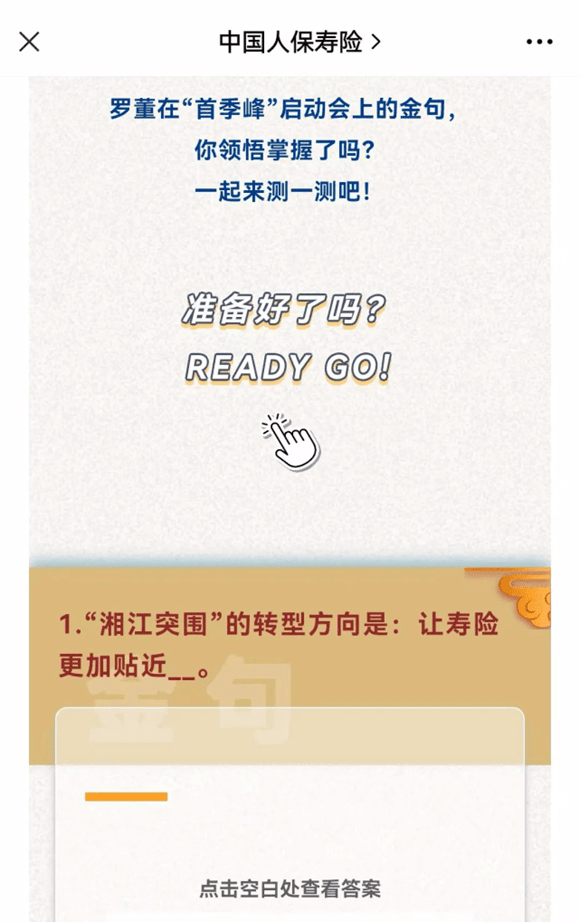 同一時期,人保壽險官方公眾號多次發佈提倡員工學習“羅熹金句”的內容,並推送《首季峯啓動會上,羅熹董事長這些金句值得收藏!》、《以考促學,一套題帶你牢記“首季峯”金句》等數篇文章。