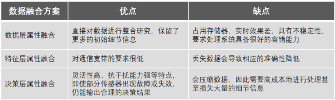 4.數據融合按目標屬性,分為決策層融合、特徵層融合和數據層融合。