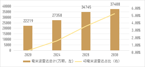 隨着產量上升、芯片集成化、國產化,4D 成像毫米波雷達成本有望持續降低。