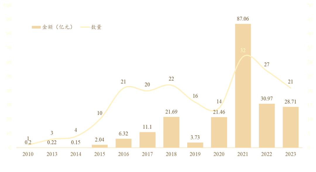 從融資金額來看,我國激光雷達企業在2021年達到融資高峯期,全年融資金額高達80億元。2022-2023年激光雷達企業融資熱度依然不減,平均年融資金額達到30億元。