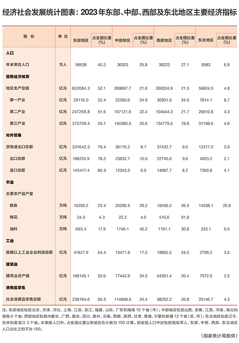 經濟社會發展統計圖表:2023年東部、中部、西部及東北地區主要經濟指標國家統計局