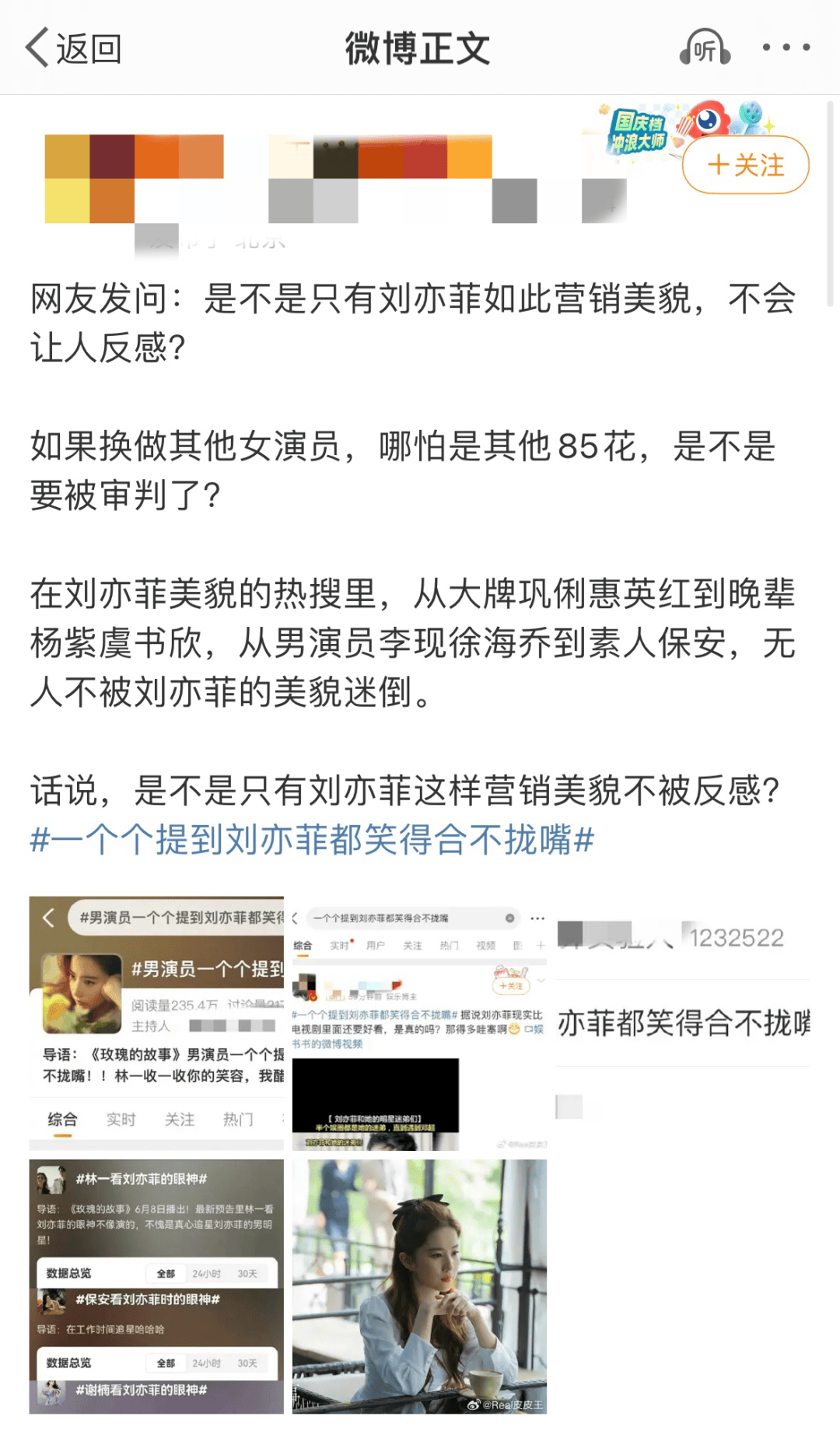 《玫瑰的故事》發佈會上,劉亦菲的非官拍圖顯得人有些浮腫,但網友卻表示“有種氣血很足的美”。章子怡演年輕少女被羣嘲,但黃亦玫登場時也只有22歲,劉亦菲收穫的評價卻是“天選女大”。在觀眾眼中,劉亦菲不會為了保持顏值、身材,往“白瘦幼”的方向過度靠攏,也不會在劇集畫面的呈現中疊加過度柔化的濾鏡以及一幀幀的修圖。而這些,往往是同齡女演員們的必備動作。