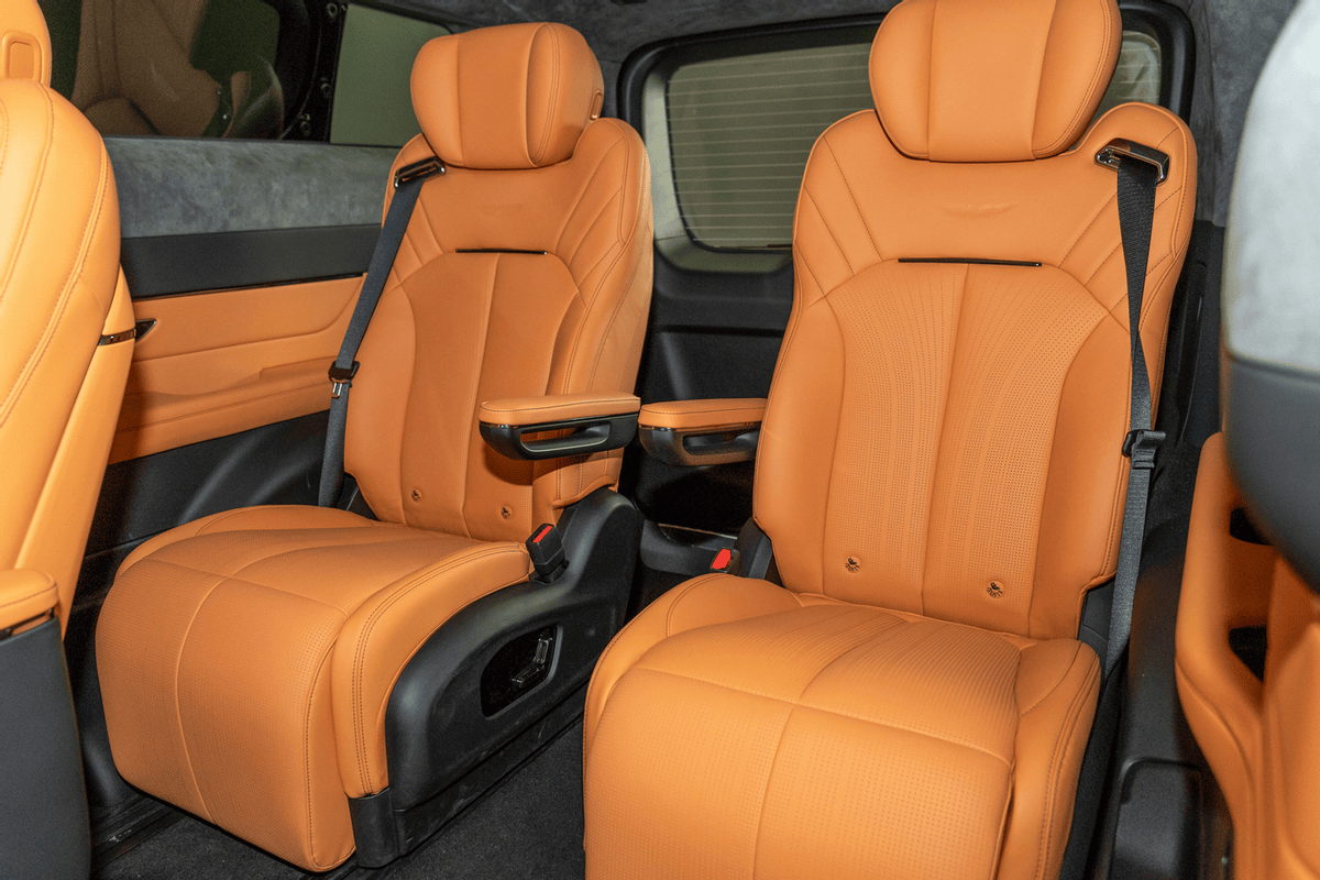 即便是在第三排,它的空間也達到了超越行業水準的940mm,並且輕鬆容納了兩張帶有獨立扶手、可調腿託和電動調節功能的航空級座椅。