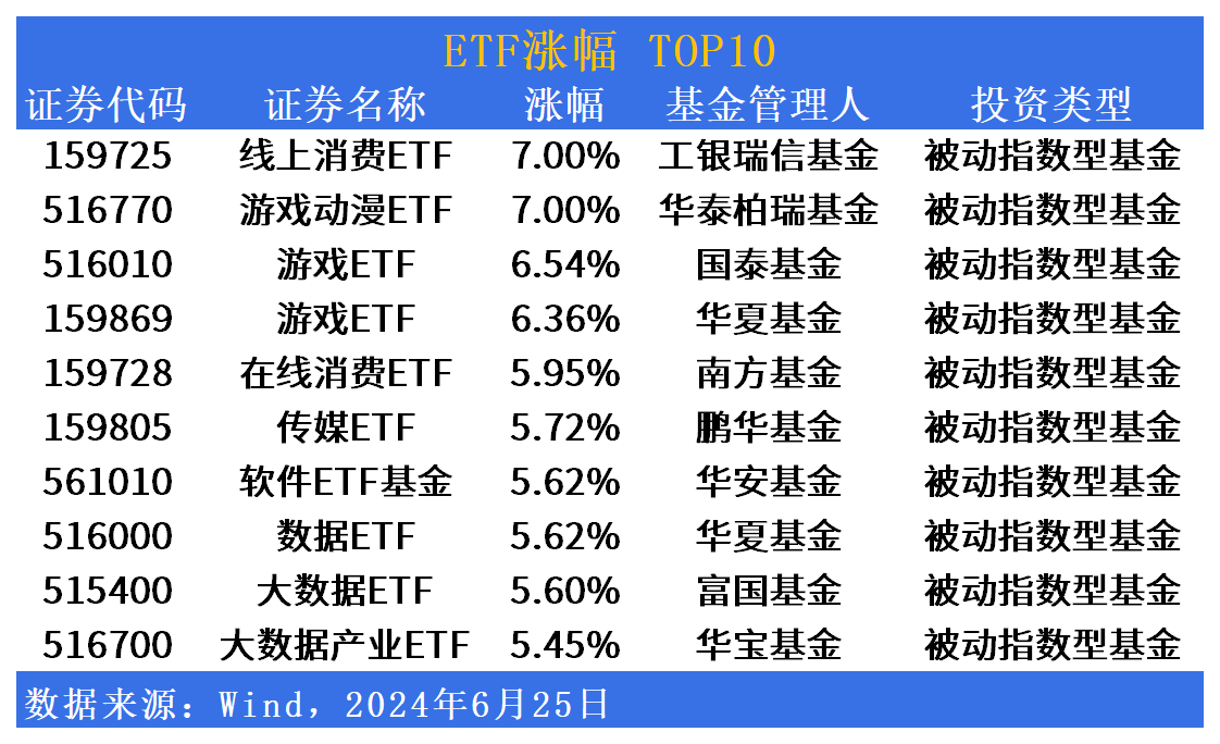 漲幅方面,線上消費ETF(159725)領漲全市場